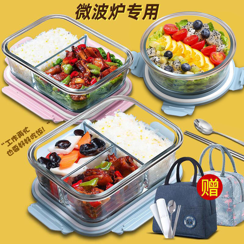 サラリーマン向け弁当セット 3コンパートメントガラス弁当箱 保温弁当箱 電子レンジ対応 蓋付き専用ボウル 女性用