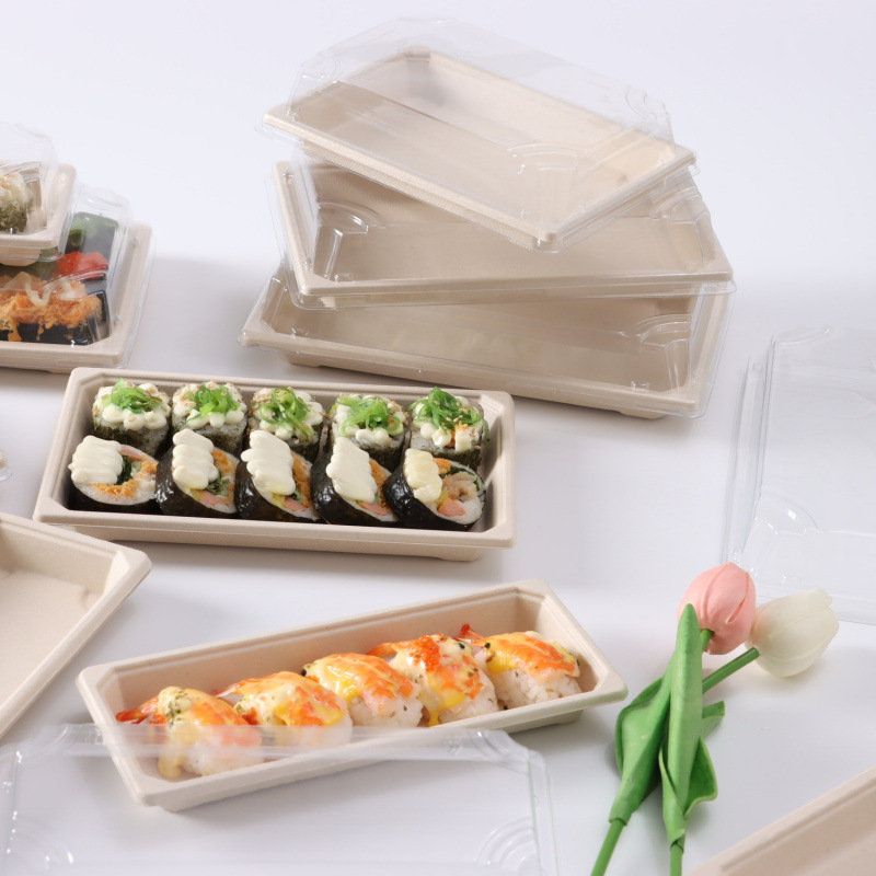 使い捨ての長方形の寿司皿はパルプを分解できます。