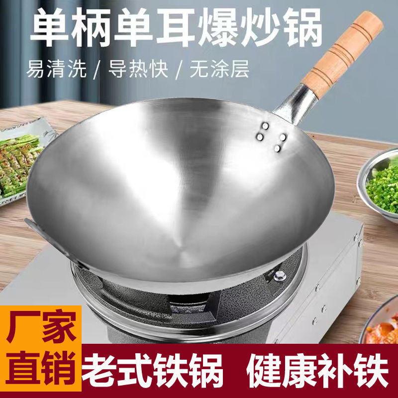 旧式の鉄鍋の炒め鍋は鍋にくっつかないで炒めます。