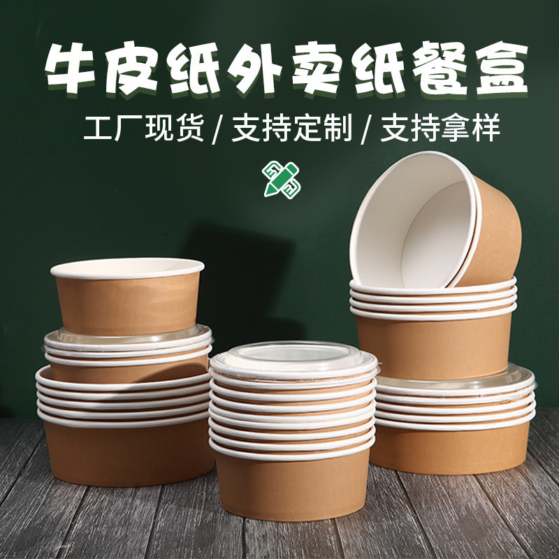 使い捨ての紙碗のクラフト紙の円形は蓋を持っています。