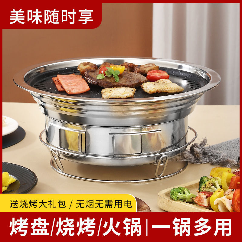 ラウンドバーベキューグリル屋外木炭フルセットステンレス鋼韓国無煙家庭用商業バーベキューグリルバーベキューポットフライパン