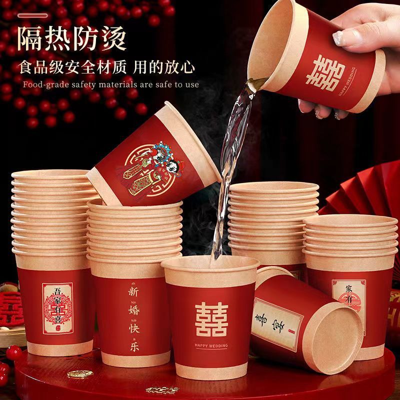 結婚用の使い捨て紙コップの箱の中の卸売りの祝い事の使い捨ての祝杯の厚い披露宴の赤い紙コップの家庭用の結婚祝い