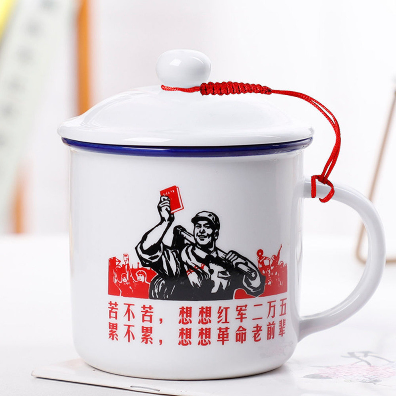 古い陶磁器のコップのマグカップは蓋の家庭用のコップのアイデアを持っています。