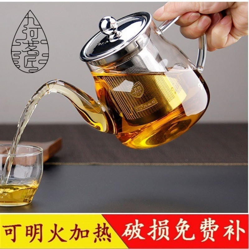 ガラスティーポット耐高温ティーポットステンレスフィルター茶器ガラス厚い耐熱緑茶ティーポットセット