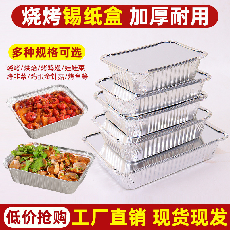 錫箔箱長方形増粘バーベキュー特殊高温耐性家庭用オーブン商業テイクアウト使い捨てカバー付き牡蠣