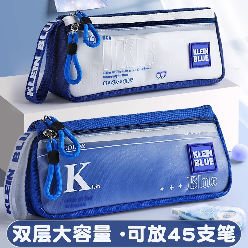 紺色の速達筆袋大容量男子高颜値帆布文房具箱文芸青年男子透明文房具袋