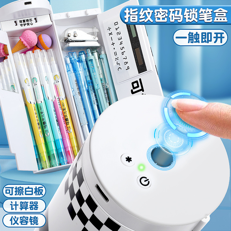 指紋暗号ロック多機能文房具ケースハイテク暗号ロック男女の子鉛筆ケース大容量ペンケース中