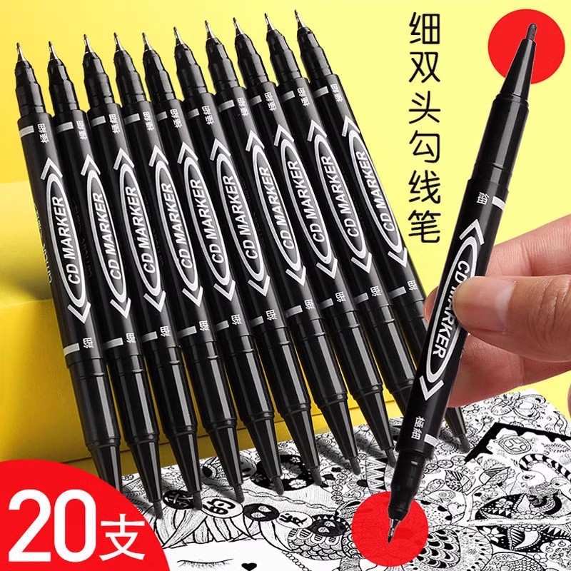 黒水性マーカー幼稚園絵画双頭フックペンアート小学生用油性マーカー