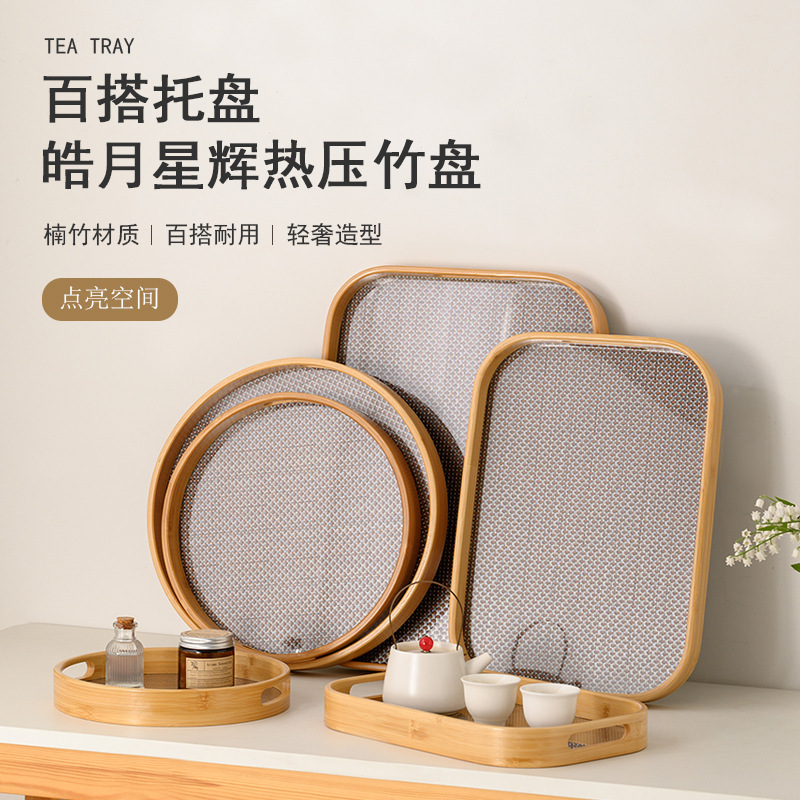 北欧の新鮮な竹木製トレイ茶室 B&B ホームスクエアラウンドホテルレストランバーベキューパン商業ティートレイ