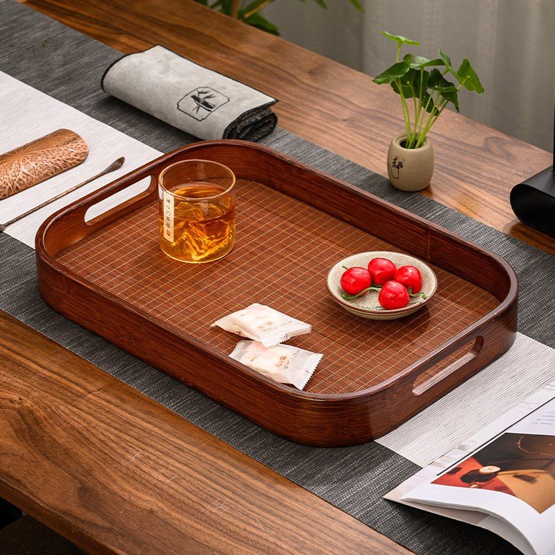 シートトレイ 和風竹木製トレイ 無垢材長方形プレート 木製ハンドル ティートレイ ナッツトレイ フルーツトレイ