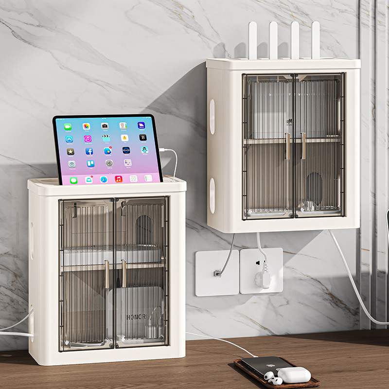 Wi-Fiルーター収納ボックス防塵リビングルームライト猫セットトップボックス収納ラックソケットワイヤー収納ボックスケーブル管理ボックス