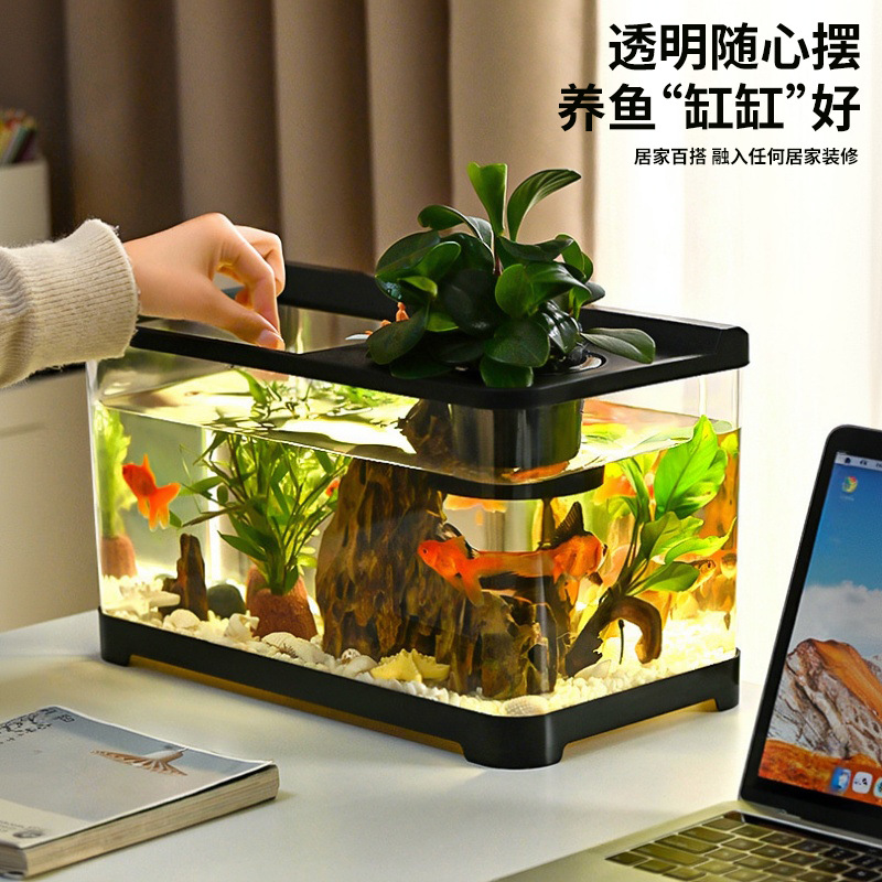 リビングルーム観賞魚水槽デスクトップ生態造園水槽模造ガラス透明水槽蓋付き中型家庭用造園水槽