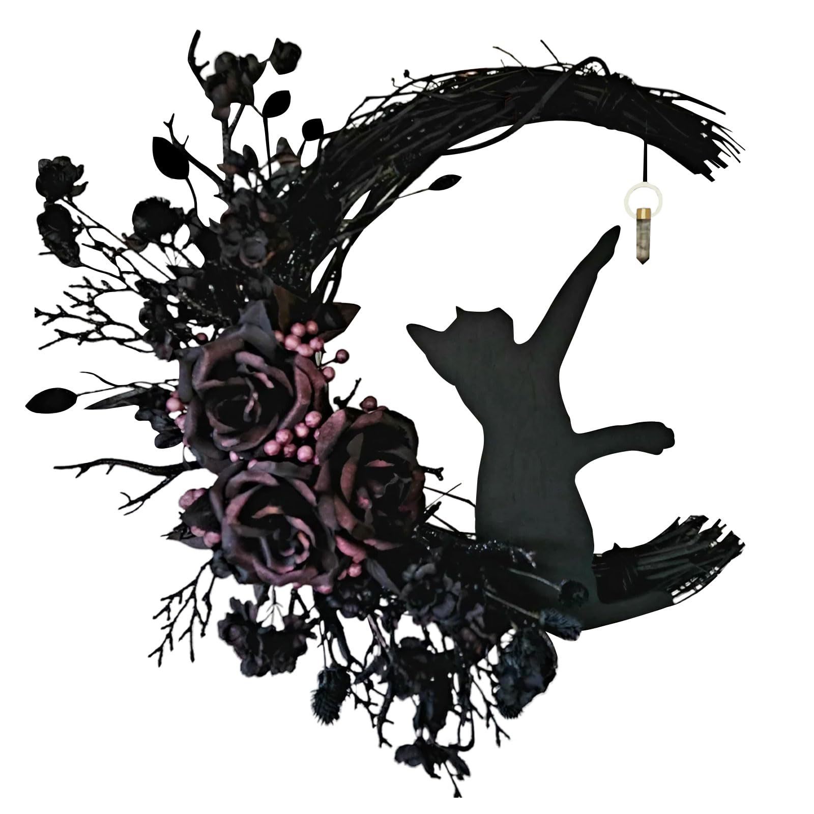 ハロウィーン新月猫花輪家庭装飾シミュレーション植物造花枯枝藤圏祝日装飾品卸売り