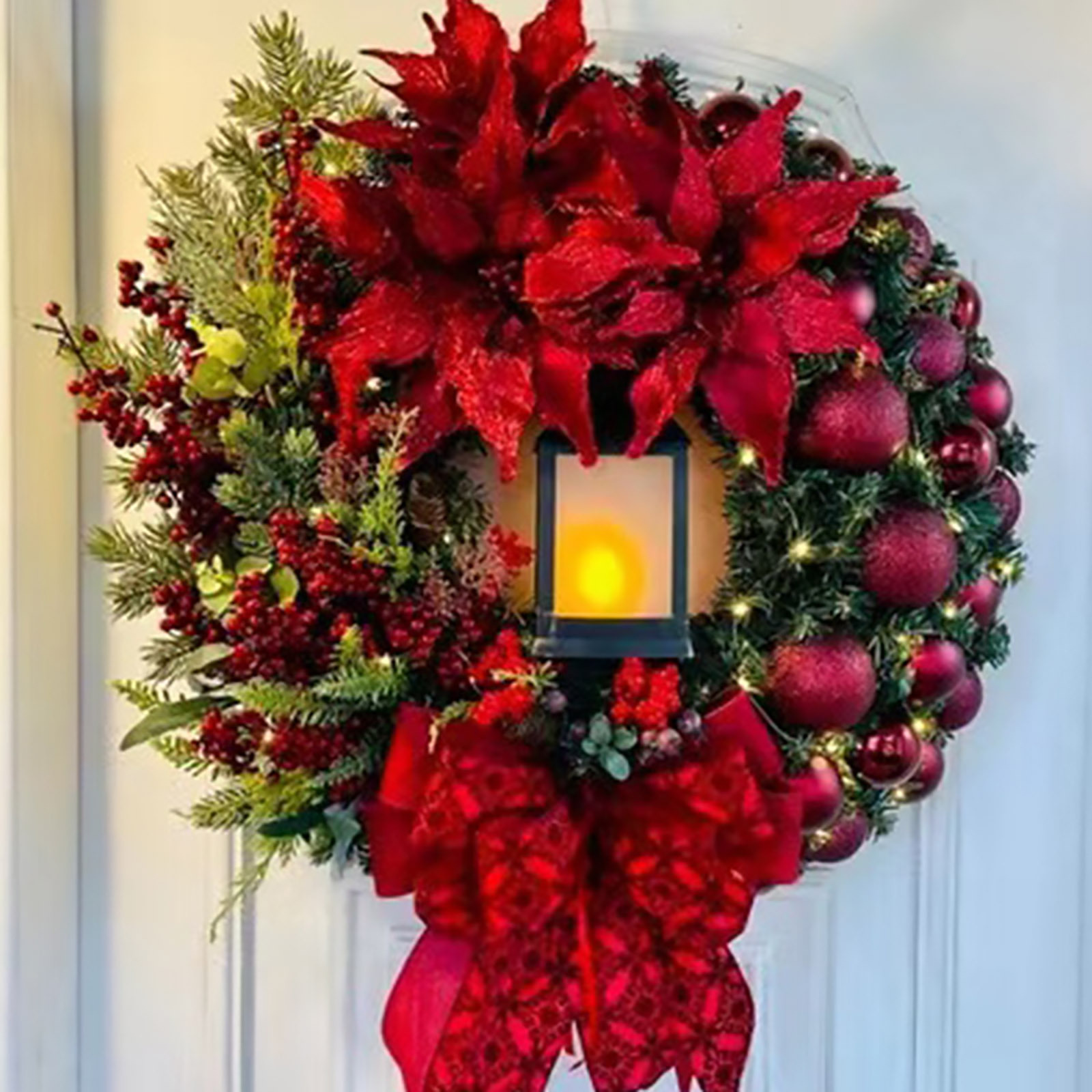 2024クリスマス花輪独立駅アマゾンイエスクリスマスランプ紅花クロスボーダー装飾ドア掛けアクセサリー