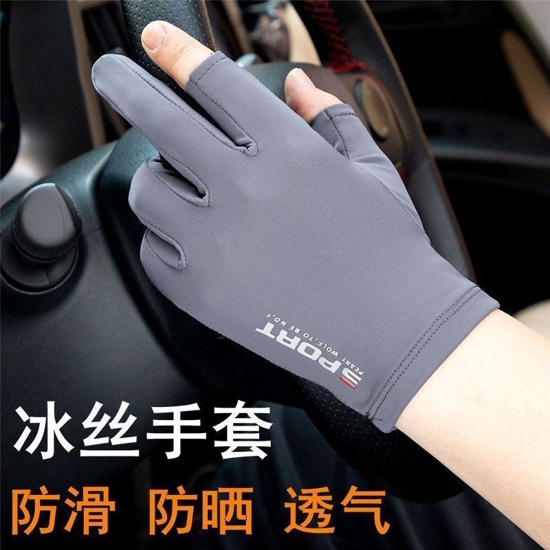 女性用薄手シルク防汗サイクリングと運転用、男性用夏用スケートと半分の釣り用日焼け止め手袋、2本指のテイクアウト