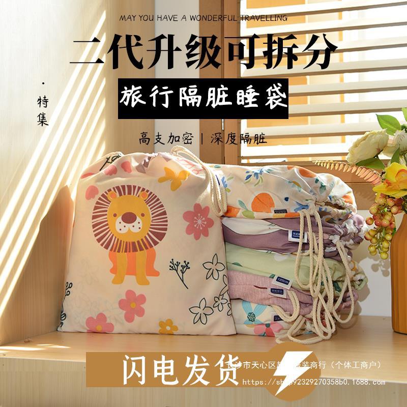 ポータブル旅行ダブル卸売シングルベッドシーツ分割防汚ホテル旅行防汚寝袋雪波キツネ肥厚