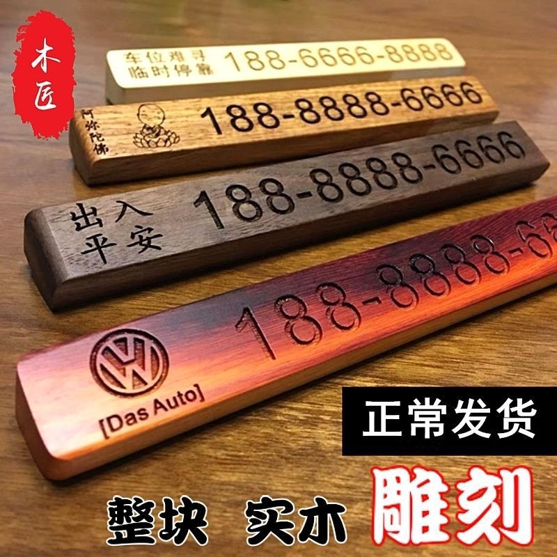 彫刻された新しい車の電話プレート、創造的な日焼け止め、木製のパーソナライズされた一時的な駐車プレート、赤い移動電話プレート