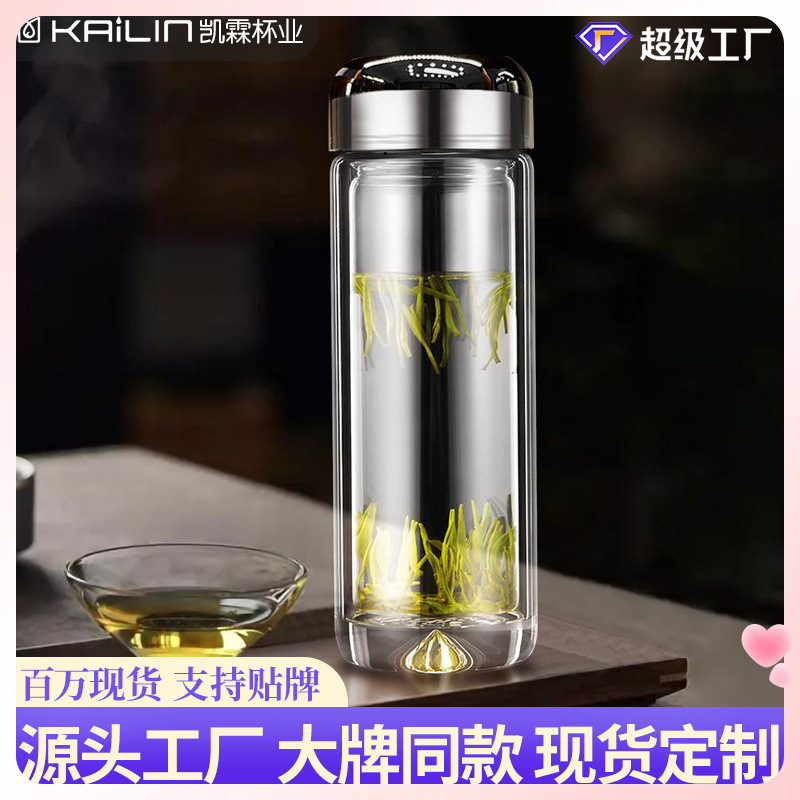 ギフトベース ティーカップ ガラス二重層ライナー ✅ ウォーターカップ メンズ ライト 高級 水滴 増粘 ビジネスカップ U字型