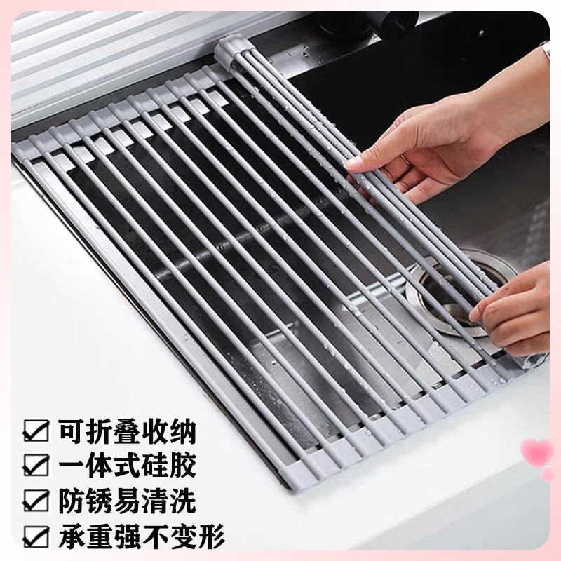水フィルターバスケットローラーブラインドシリコンシンク排水ラック水フィルタークロスボウルラックキッチン収納ラック断熱パッド ✅ 折りたたみ式