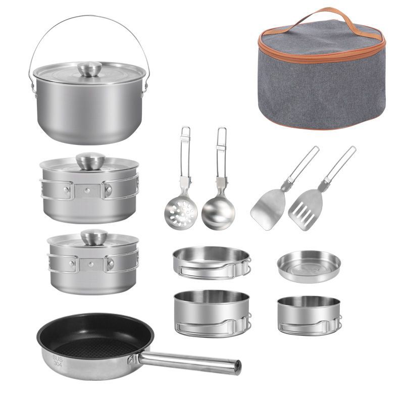 多機能キャンプポータブルポットアウトドアポットセット 304 ステンレス鋼コンビネーションセット調理器具旅行折りたたみ収納