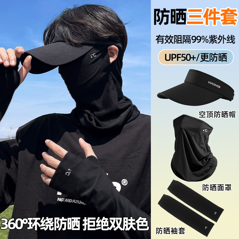 アイススリーブ日焼け止め UV 保護メンズベール登山アイスシルクサイクリング日焼け止めマスクメンズキャップフルセット