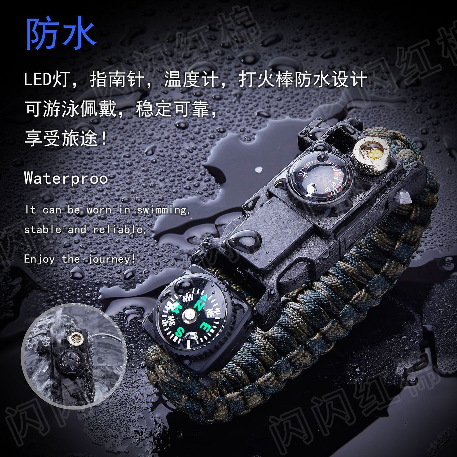 ホイッスルファイヤースティックサバイバルパラコード13ライトウィンドウブレーカーコンパス屋外ブレスレット1多機能ブレスレットコーンLED