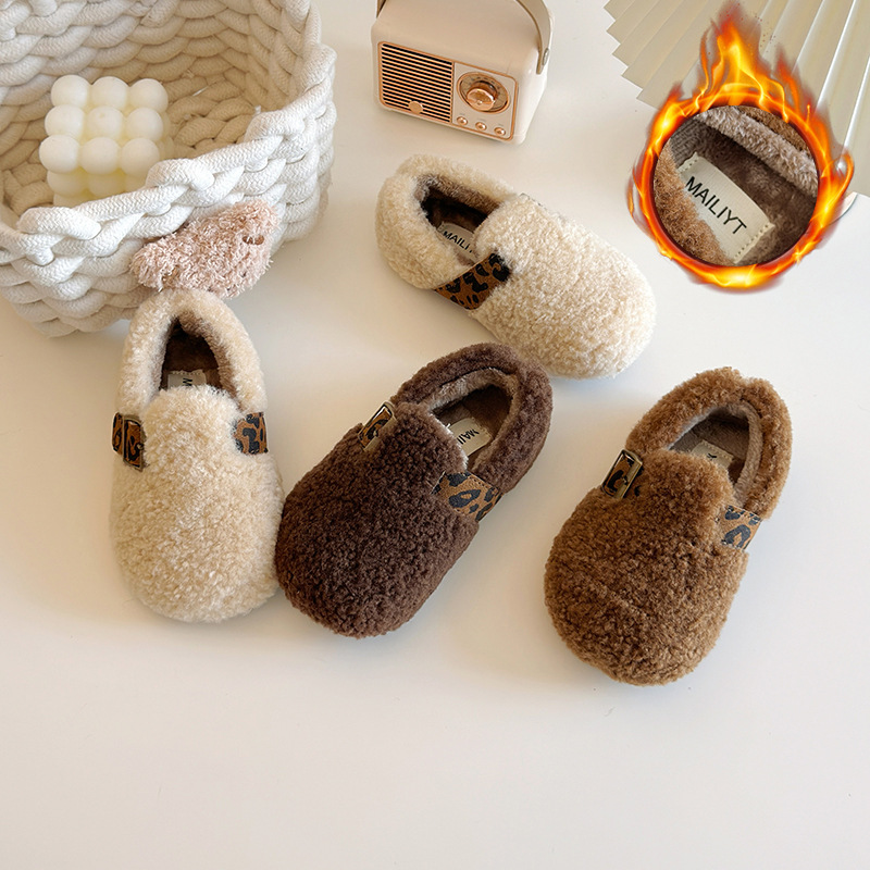 2025年冬新作 学生用プリンセスシューズ おしゃれな室内外兼用 女の子用コットンシューズ ベルベット生地 子供用豆豆シューズ 保温シューズ