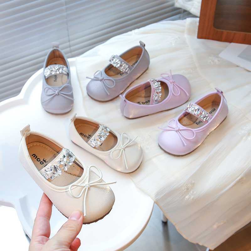 2025 春と秋の新作子供用プリンセスシューズ、ファッショナブルなダンスシューズ、蝶結びのつま先キャップ付き女の子用ソフトソールシューズ卸売
