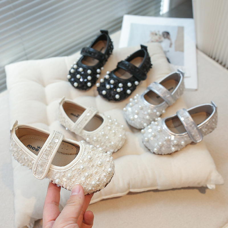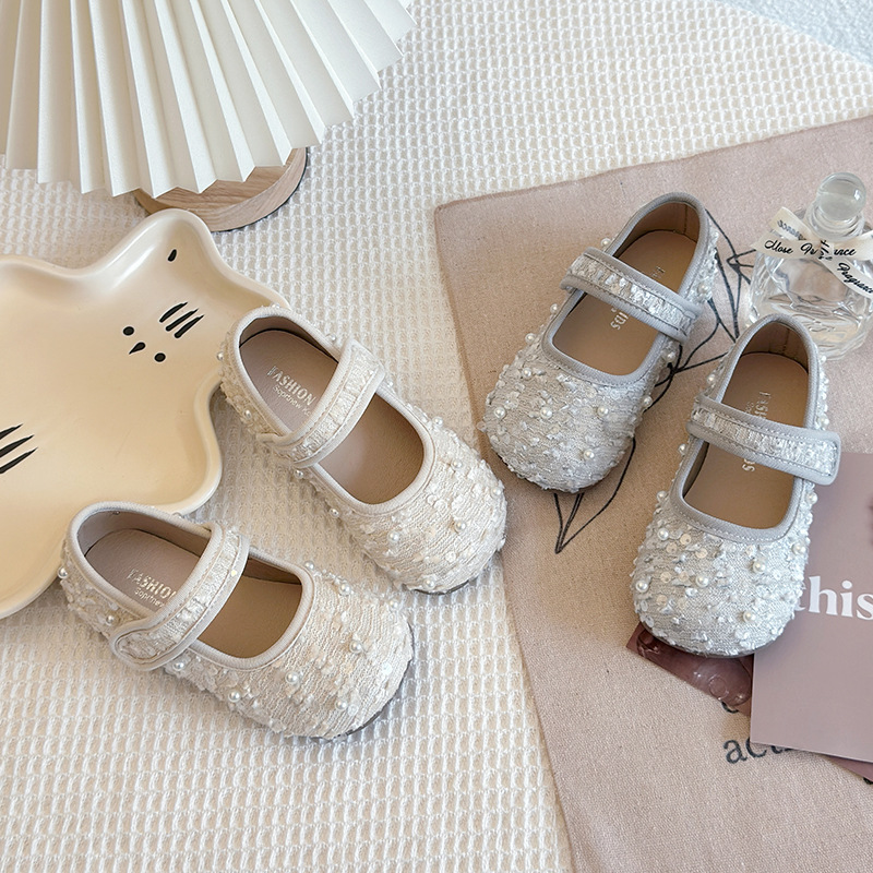 2025春秋モデルの新型子供靴プリンセス靴ファッション真珠靴子供ダンス靴卸売り代発