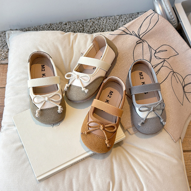 2024秋の新しい子供の王女の靴のファッションのダンスの靴の韓版は頭の女の子の柔らかい底の靴を包んで代行します。