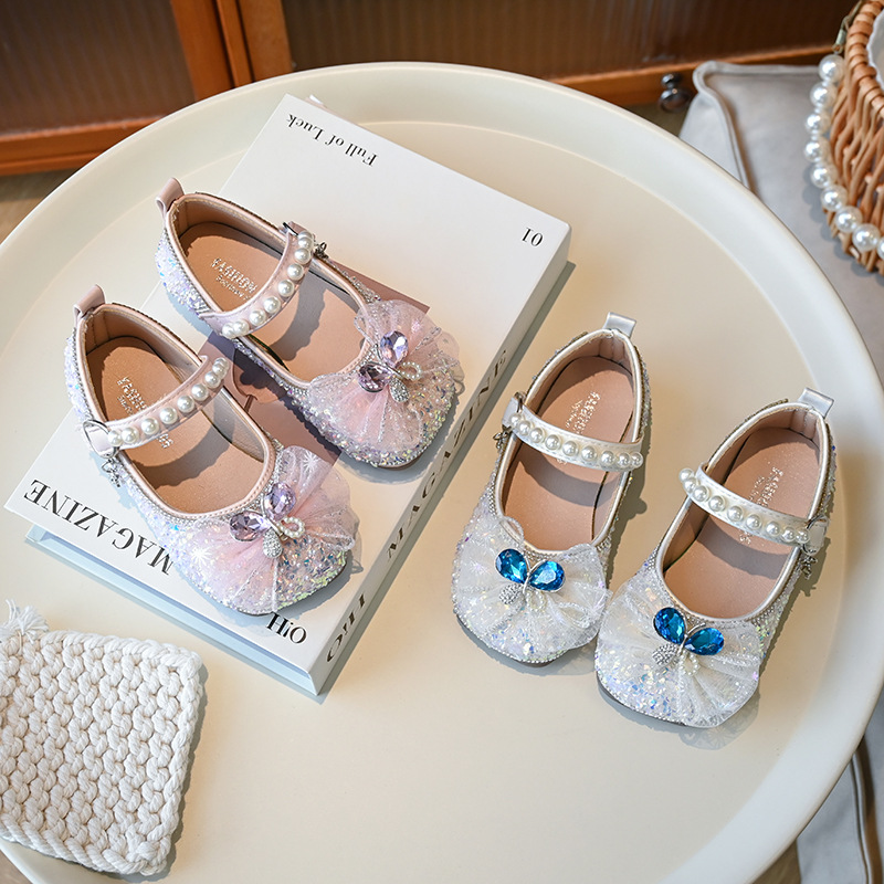 2025 秋の新作子供用蝶革靴、プリンセスシューズ、ファッショナブルな子供用ダンスシューズ、子供用靴卸売と配送