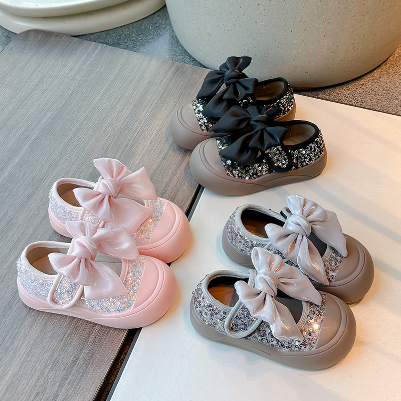 2025年春の新作子供用プリンセスシューズ、ファッショナブルなダンスシューズ、スパンコール付きトゥキャップ、女の子用ソフトソールシューズ、ドロップシッピング対応