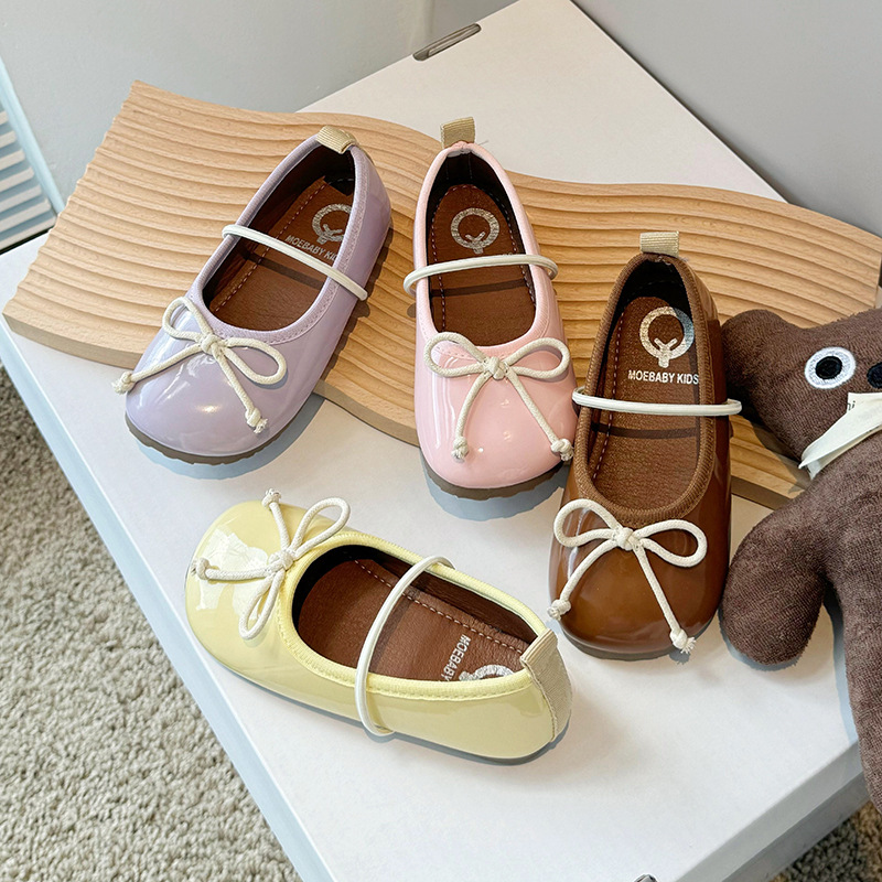 2024新型秋の靴の女の子の明るい皮のファッションの靴の蝶結びの王女の靴の色合わせの靴の卸売りは代行します。