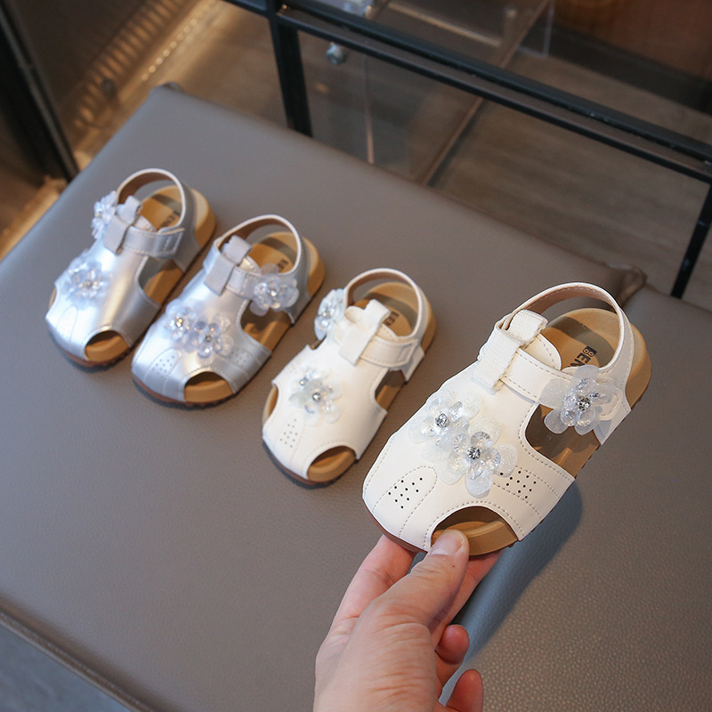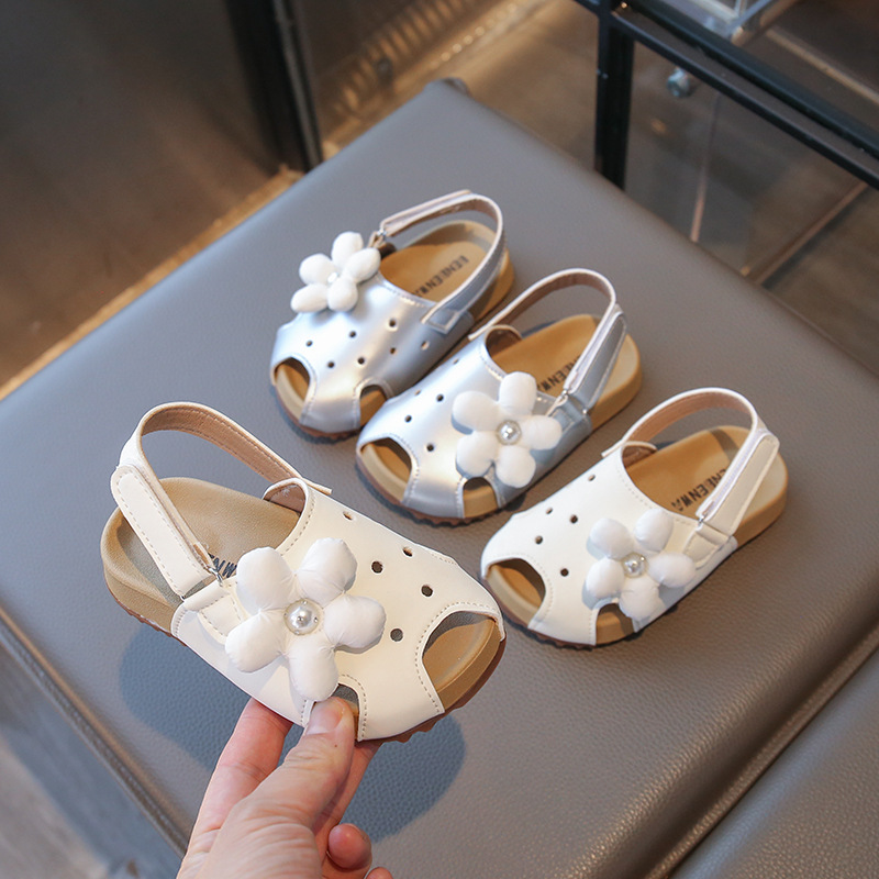 2025 新しいサンダル夏の子供のファッションカジュアルサンダル包頭ビーチシューズ女の子パールベビーシューズドロップシッピング