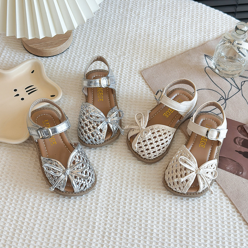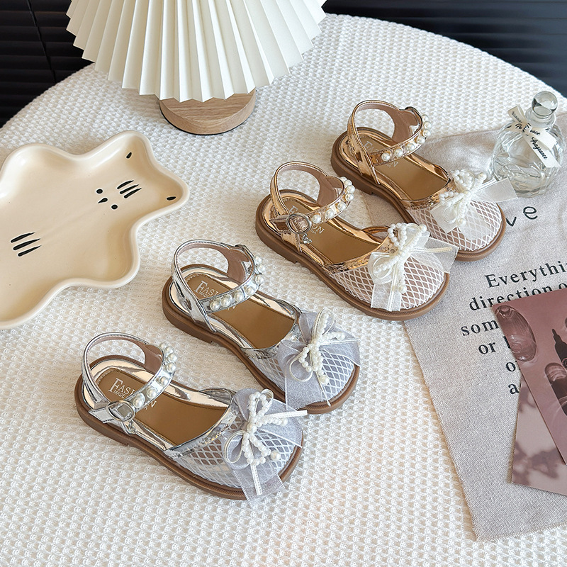 2025 女の子サンダル新弓プリンセスシューズ包頭ビーチシューズかわいいサンダル卸売弓子供靴