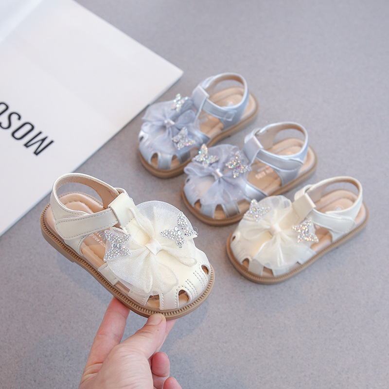 2025新型サンダル女の子ファッションお姫様靴蝶結びレース包頭サンダル卸売り代理赤ちゃん靴