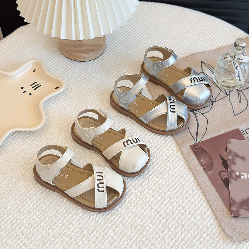 2025 夏の新サンダル女の子無地ベビーシューズ子供のファッションビーチシューズカジュアルクロスサンダル卸売