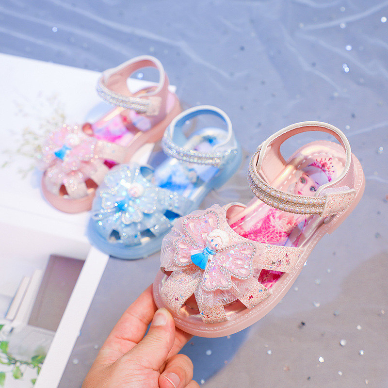 2025 女の子サンダル新弓プリンセスシューズ包頭ビーチシューズかわいいサンダル卸売立体子供靴