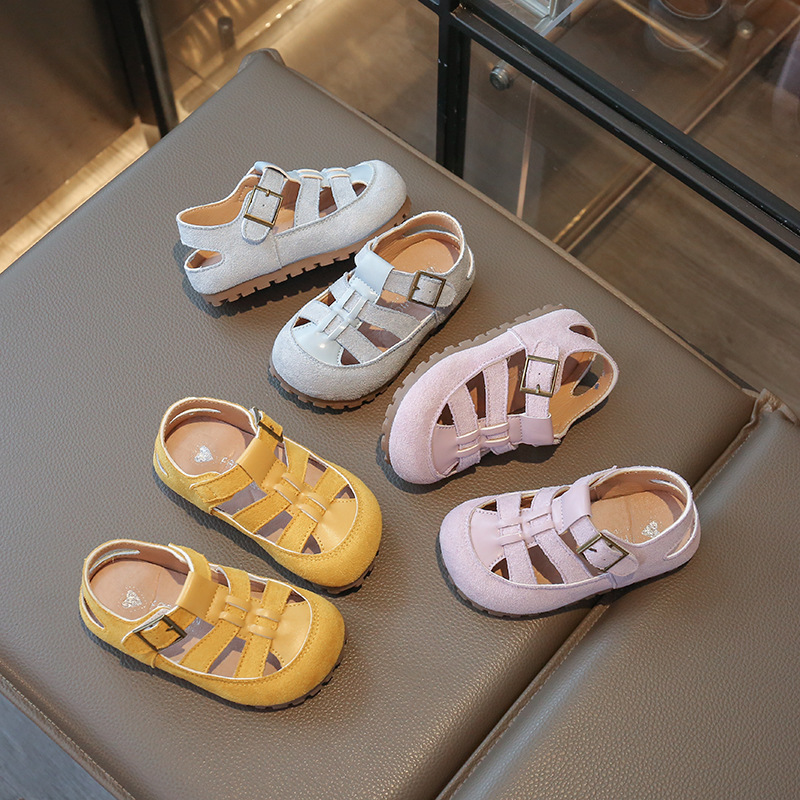 2025 新しい夏の女の子包頭ソフトソールサンダル男の子通気性サンダルビルケンシュトック靴卸売子供靴ドロップシッピング