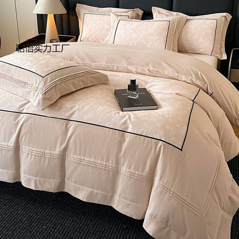 軽くて高級感のある肌に優しい純綿ジャガード綿掛け布団カバー4点セット、ベッドシーツ、裸寝用ボックスシーツ、寝具3点セット