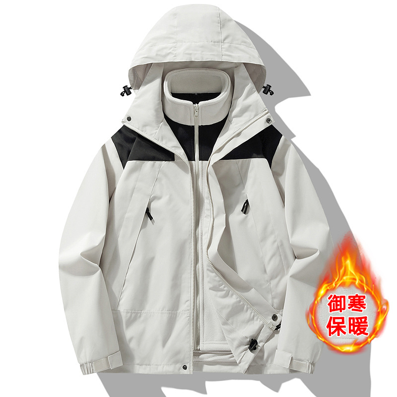 突撃服男女秋冬三合一とベルベットの厚いコートは、戸外防水カップル服メーカーの卸売りを脱ぐことができる