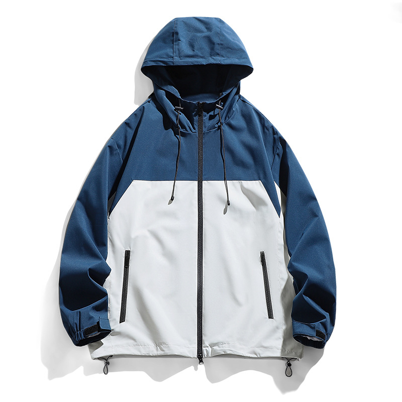 ジャケット男春秋新作帽子付きコートアウトドアスポーツ薄い色合わせファッション工装メンズメーカー直販