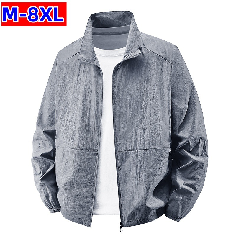 新しいメンズ日焼け防止服夏薄いアイスシルク通気性アウトドアレジャー日焼け防止服プラスサイズ無地スタンドカラートップ