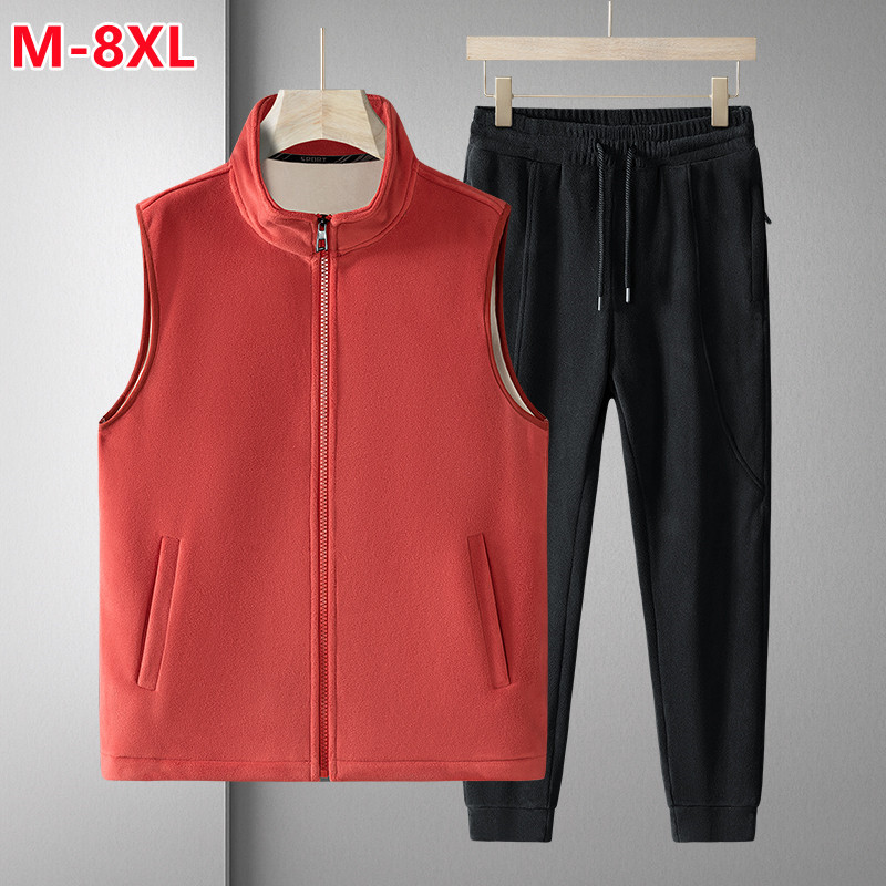 M-8XLの奥粒の絨毛のレジャーの運動のスーツの男性の秋冬のベルベットの保温の2つのセットの立襟の馬甲の運動のズボン