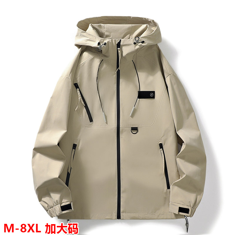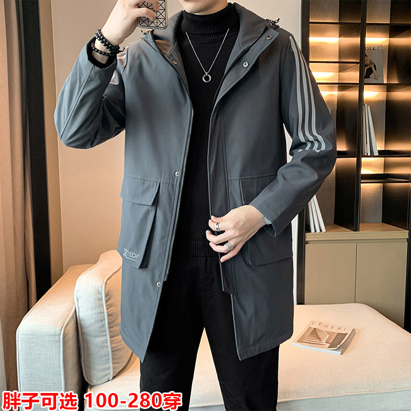メーカー直販秋冬プラスサイズメンズジャケットミディアムウインドブレーカートレンドゆるいカジュアルフード付き防風コート
