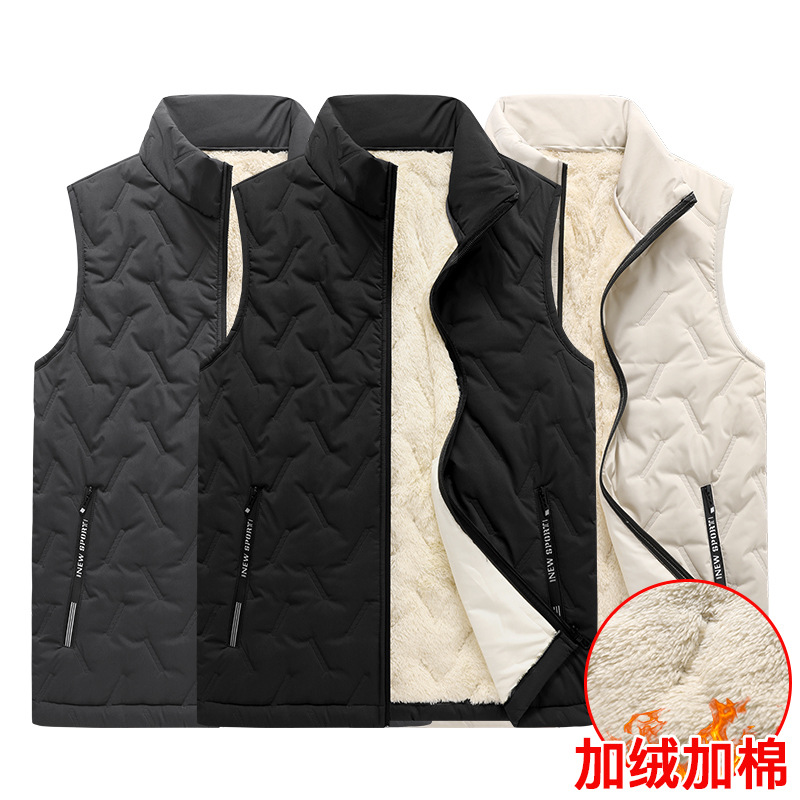 男性は冬に綿のベストをつけて保温します。カジュアルでゆったりしています。