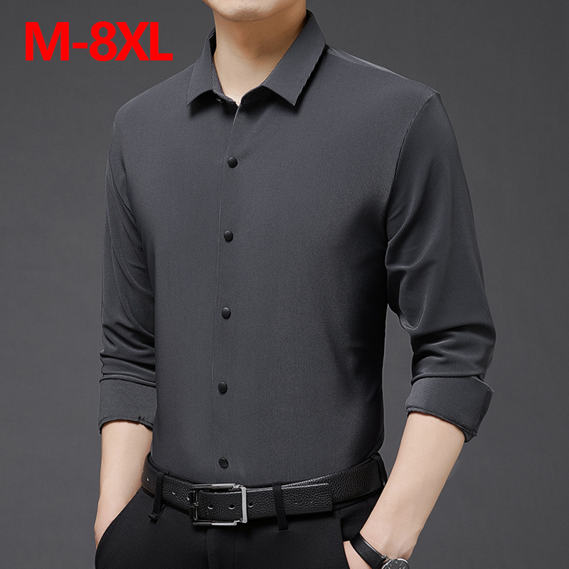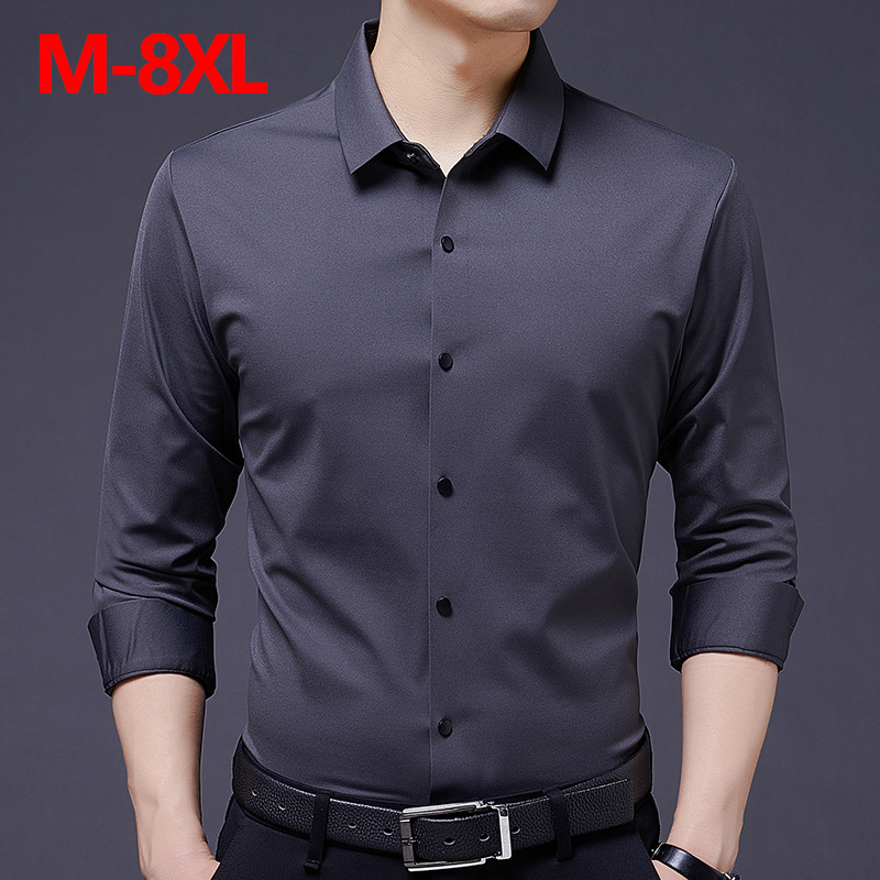 2023春秋の新型男性ビジネスシャツは、通気性のない成熟したカジュアルなファッションと太ったサイズがあります