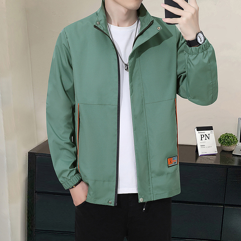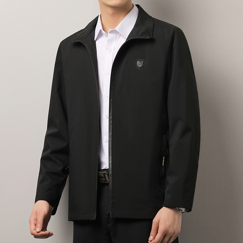 2023新型ビジネス中年男性春秋ジャケットカジュアル立襟ゆるい上着メーカー卸売り