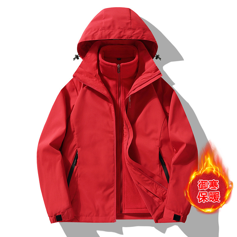 戸外突撃服三合一のベルベットコート男女カップルは冬にベルベットの中の胆をつかむ帽子付き登山服を取り外すことができる