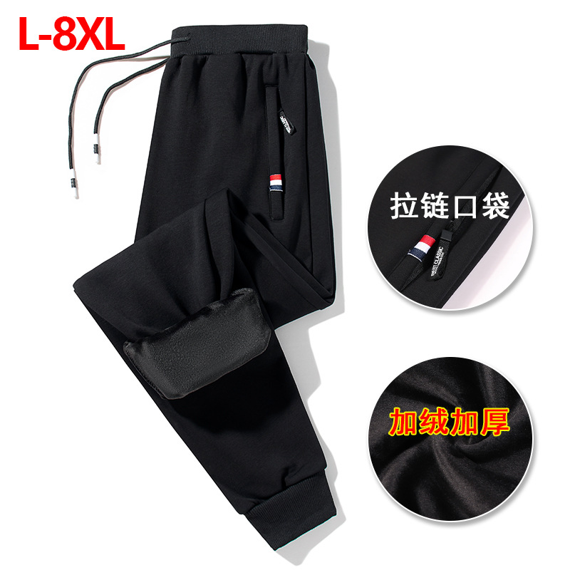 L-8Xの男性のカジュアルなズボンの秋の冬のベルベットの厚い保温ズボンのゆったりした大きいサイズの外にズボンの束のストレートなズボンを着ます。